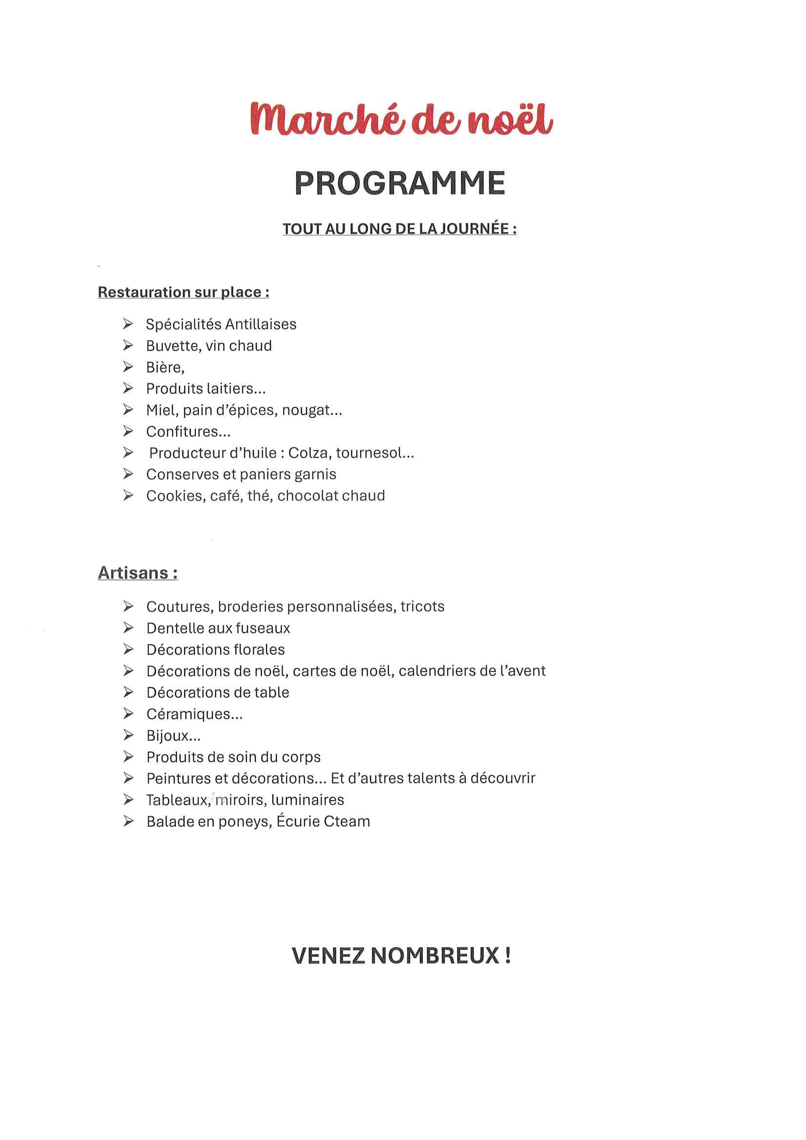 Programme marché de noël 2025