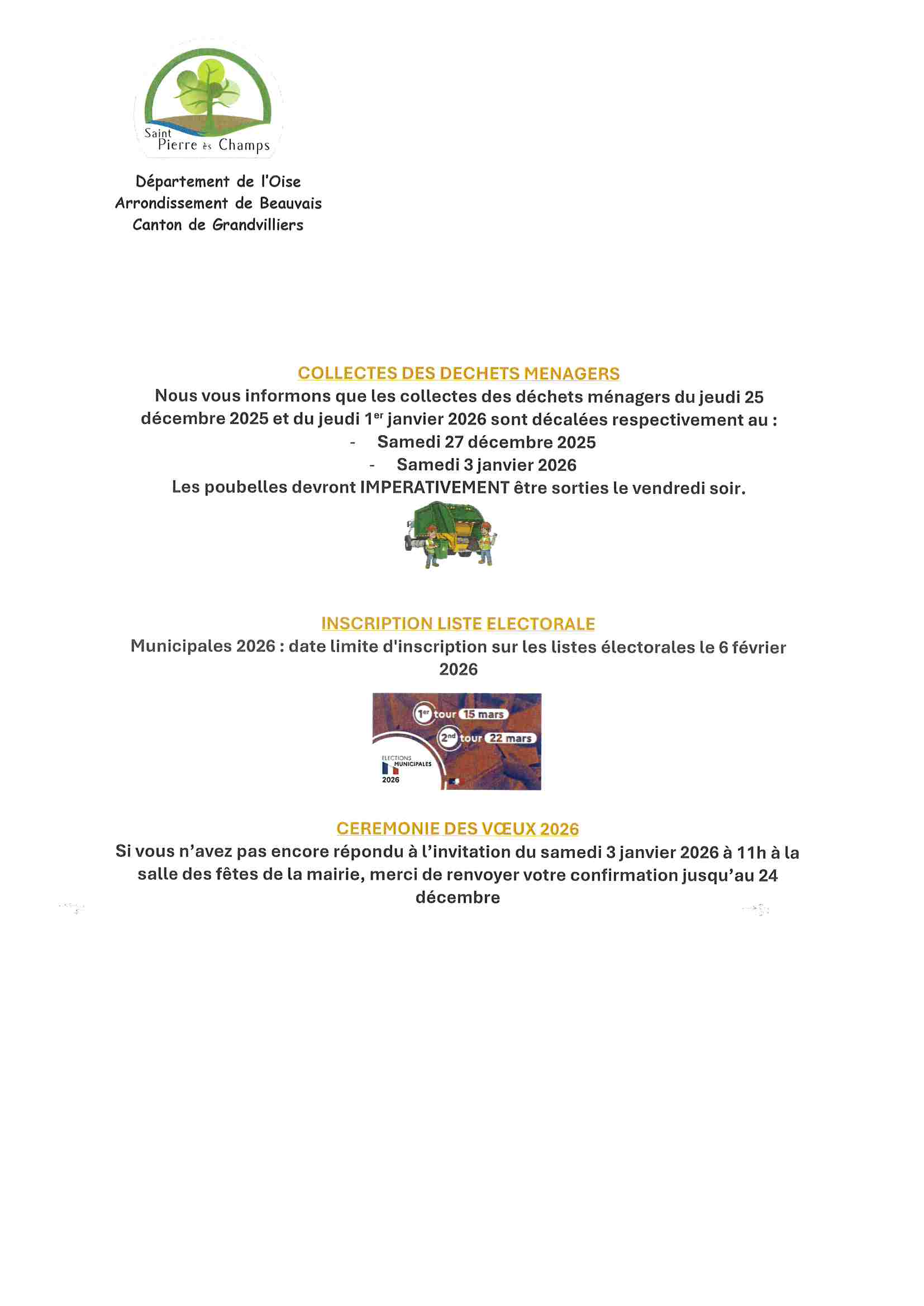 Collecte des déchets, date inscription électorale et cérémonie des vœux.