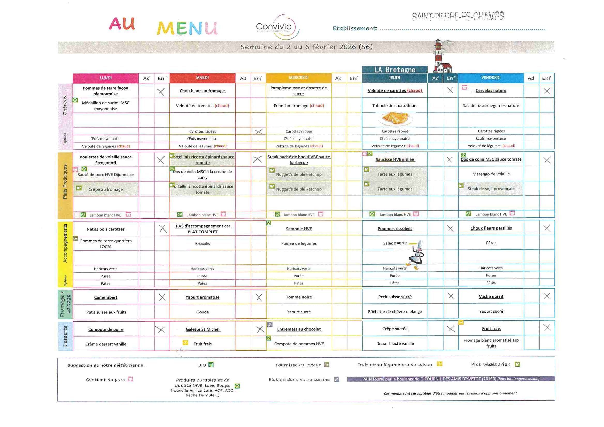 Découvrez le nouveau menu de la semaine de l'école Octave Pellerin de Saint-Pierre-Ès-Champs. Mise en ligne le : jeudi 22 janvier 2026